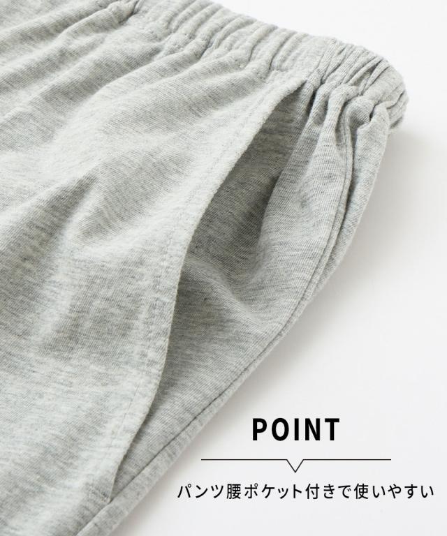 品質=本体:綿100% リブ部分:綿95%・ポリウレタン5% 透け感:なし 伸縮性:あり 生地の厚み:薄め 光沢感:なし ポケット:あり(トップス胸1カ所・パンツ腰2カ所) 季節:夏 シルエット:少しゆったり 原産国:中国製 備考:洗濯機OK ネット使用 ※商品サイズは、仕上がりサイズです。
