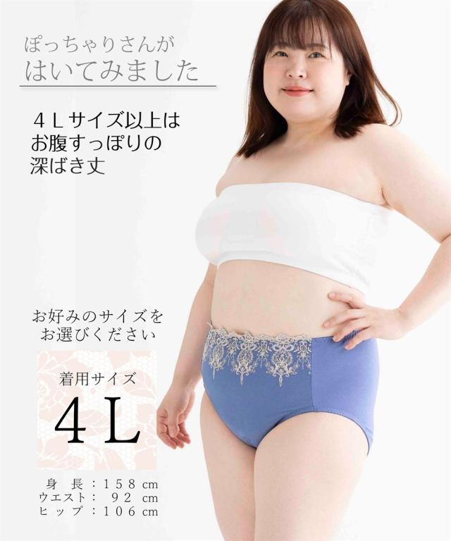 ショーツ レディース 綿100% 刺しゅう レース 4枚組 サイズ別はきこみ丈 春 夏 秋 冬 女性 インナー パンツ パンティ | LL/3L | ニッセン nissen
