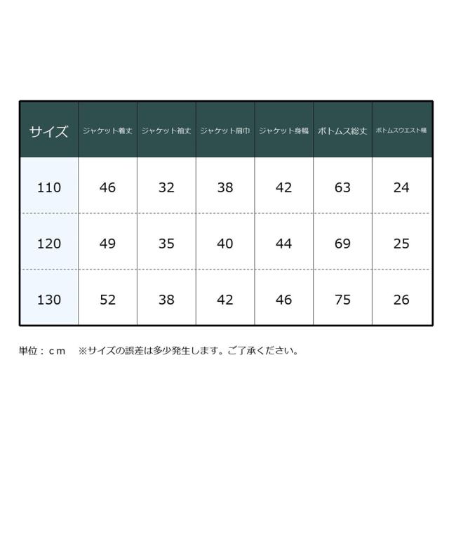 品質:ポリエステル100%(織物) 柄の出方が多少異なる場合があります 透け感:なし 伸縮性:なし 生地の厚み:普通 ポケット:[ジャケット]前2 [パンツ]両脇 パンツ:ウエスト総ゴム(ウエスト調節内ひも入り) 季節:春・秋向き シルエット:普通 原産国:ミャンマー製 備考:洗濯機OK 単位:cm ※サイズの誤差は多少発生します。ご了承ください。