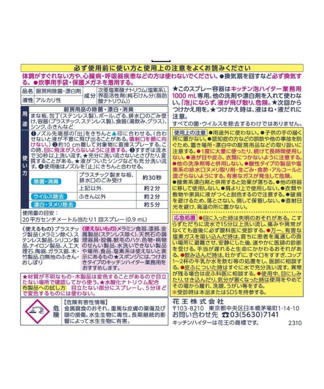 洗剤 花王 キッチン 泡ハイター 業務用 つけかえ用1000mL 台所用 漂白剤 春 夏 秋 冬 | Y | ニッセン nissen