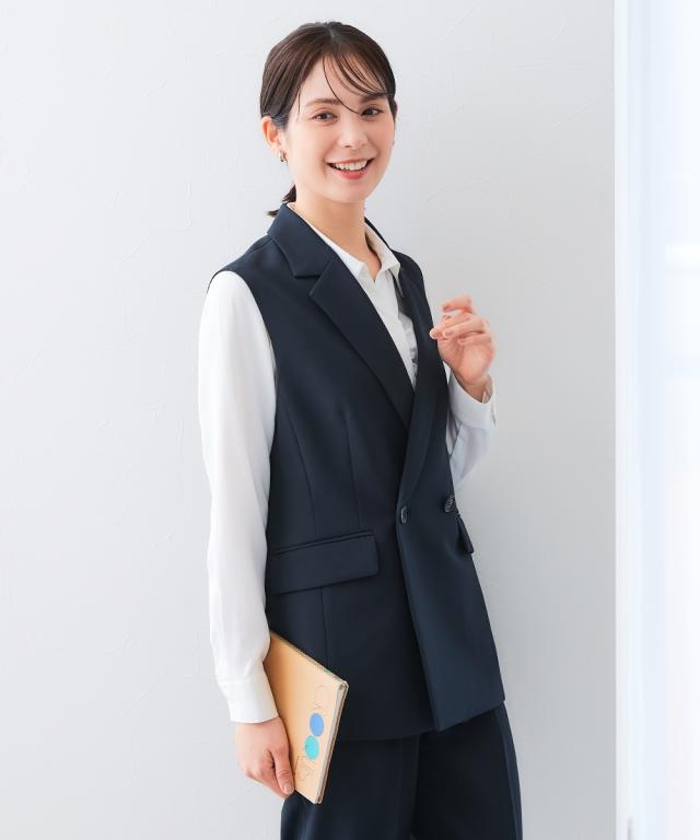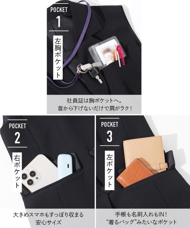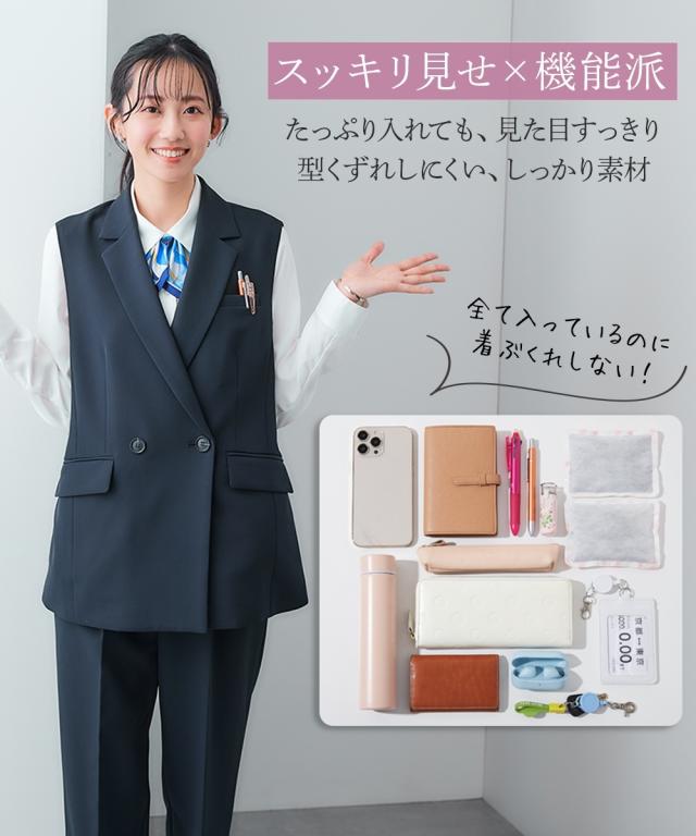 事務服 ベストスーツ レディース 会社制服 多ポケット付 ベスト スーツ ロング丈 + パンツ 羽織る バッグ 有 春 夏 秋 冬 会社 制服 | S/M/L | ニッセン nissen