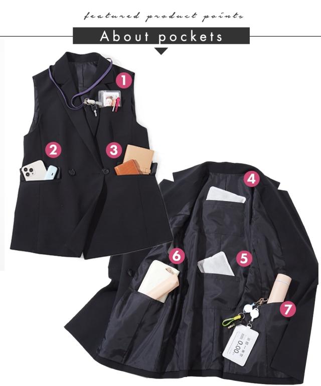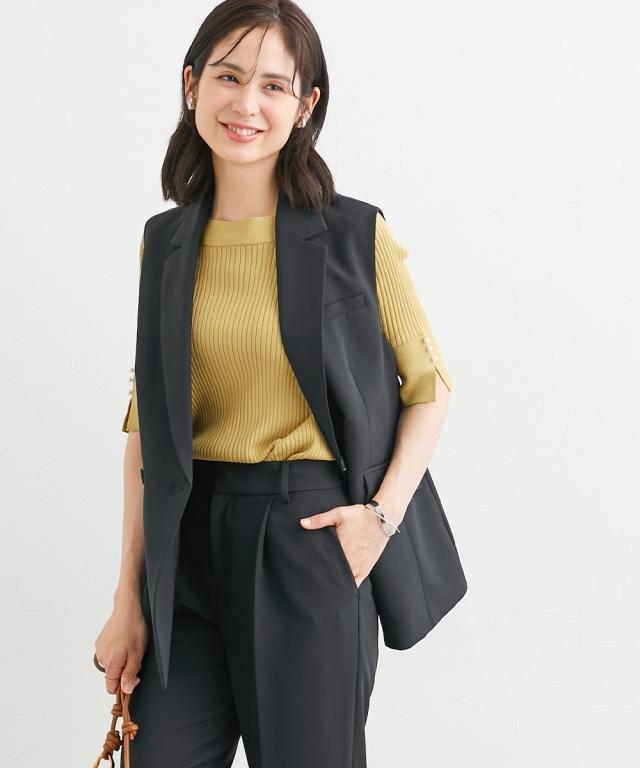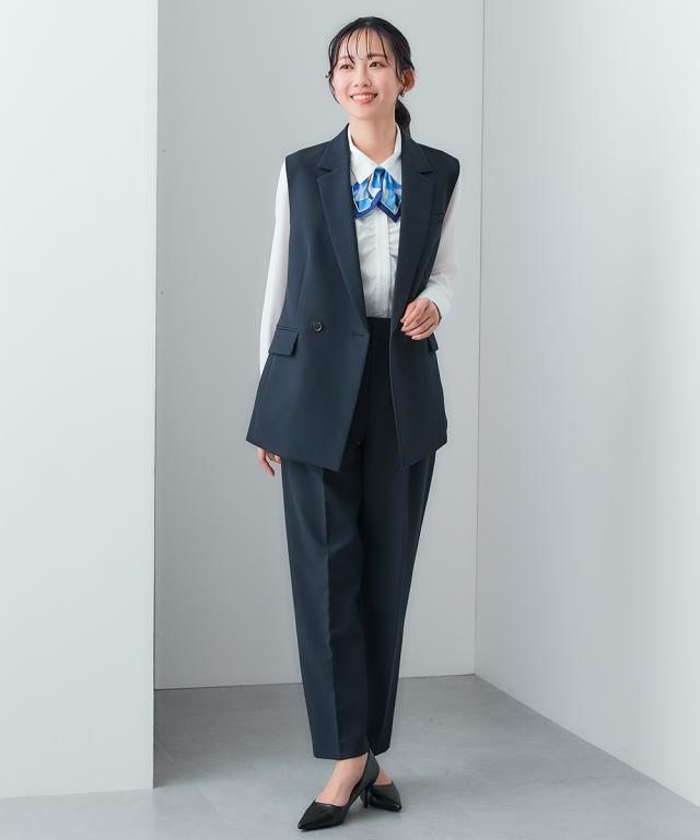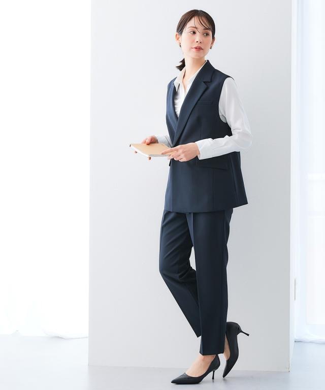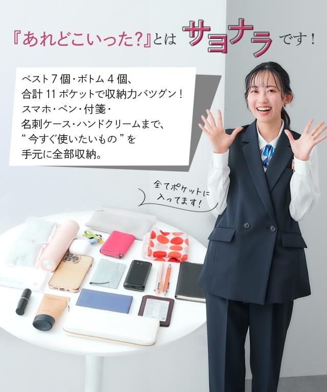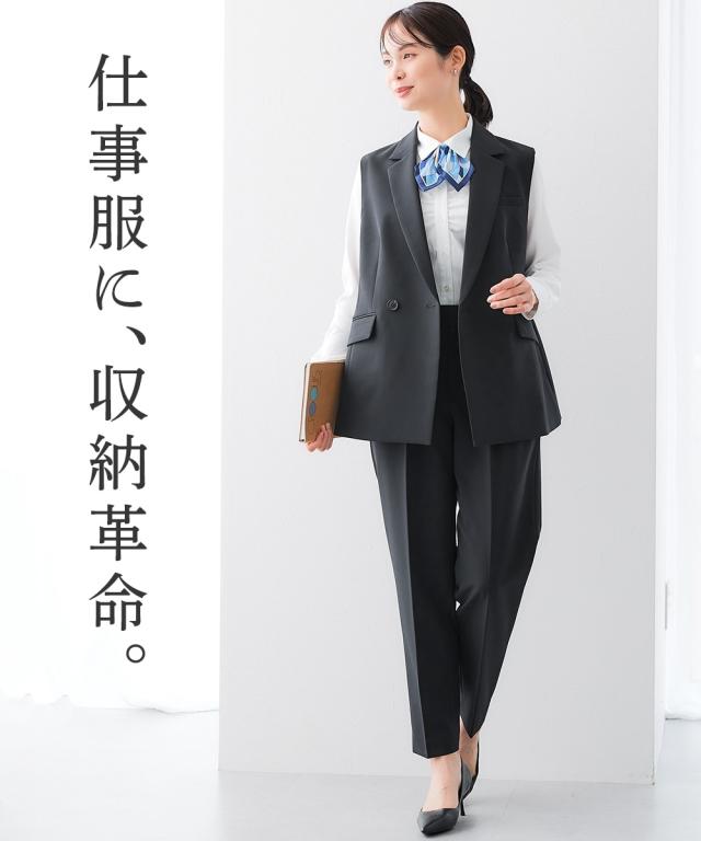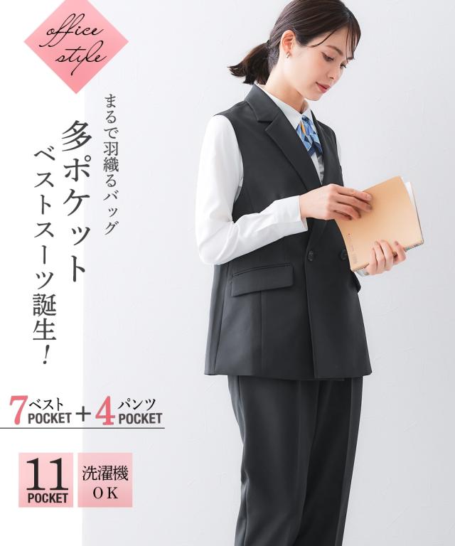 事務服 ベストスーツ レディース 会社制服 多ポケット付 ベスト スーツ ロング丈 + パンツ 羽織る バッグ 有 春 夏 秋 冬 会社 制服 | LL/3L | ニッセン nissen
