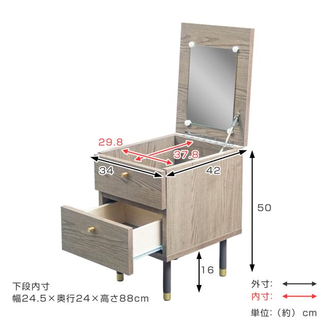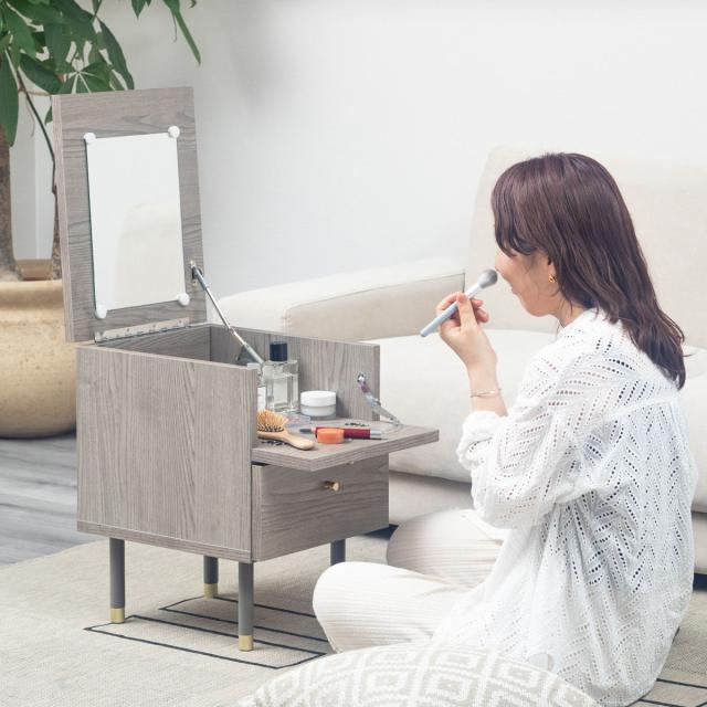 《 LH18755 ベッドサイド ソファサイド インテリア リビング 北欧 家具 化粧品 アクセサリー 鏡付き デスクドレッサー 省スペース 寝室 オシャレ お洒落 兼用 ナチュラル メイク コスメ 収納 》