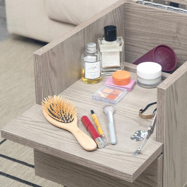 天板を閉じれば生活感を感じさせないサイドテーブルとして使えます。