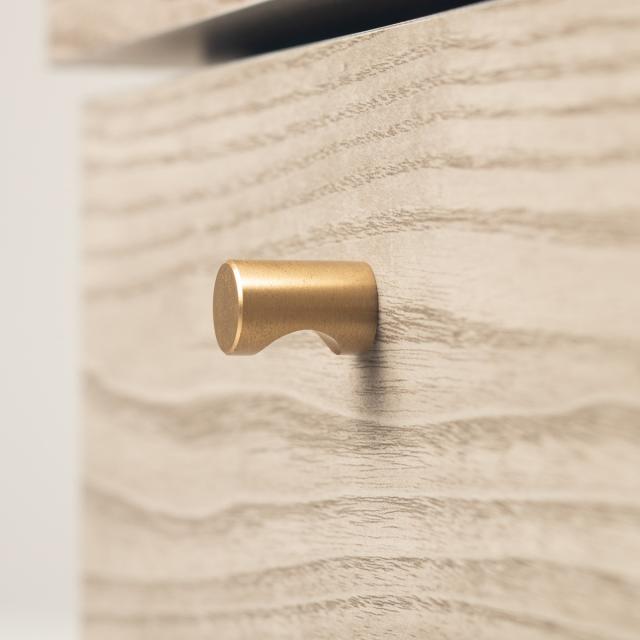 真鍮の取手とダークグレー、ゴールド(アルミ製)の脚の組み合わせが落ち着きのある上品な雰囲気です。