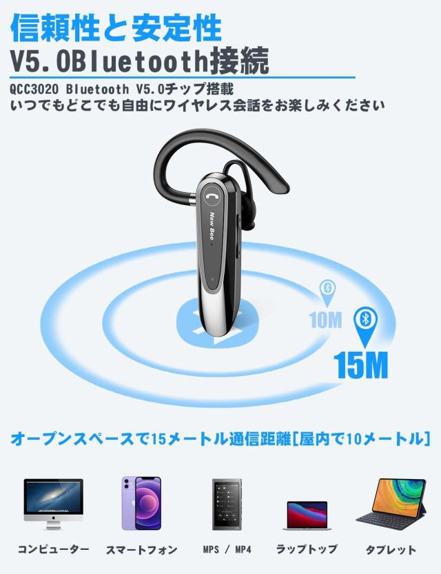 Bluetooth ヘッドセットはBluetooth V5.0を搭載しており、スマホ、パソコン、タブレット、Scms-t,ガラケー、iOS, android, Windowsなどに対応できます。