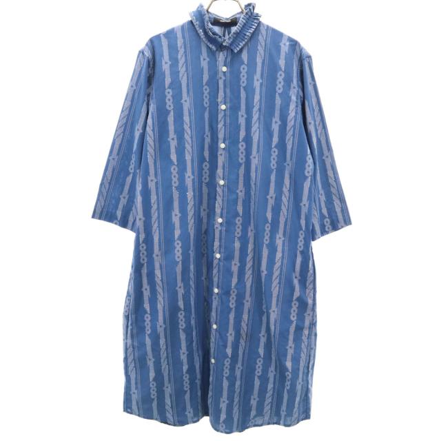 Ne-net ネネット 総柄 長袖 ワンピース 2 ブルー レディース