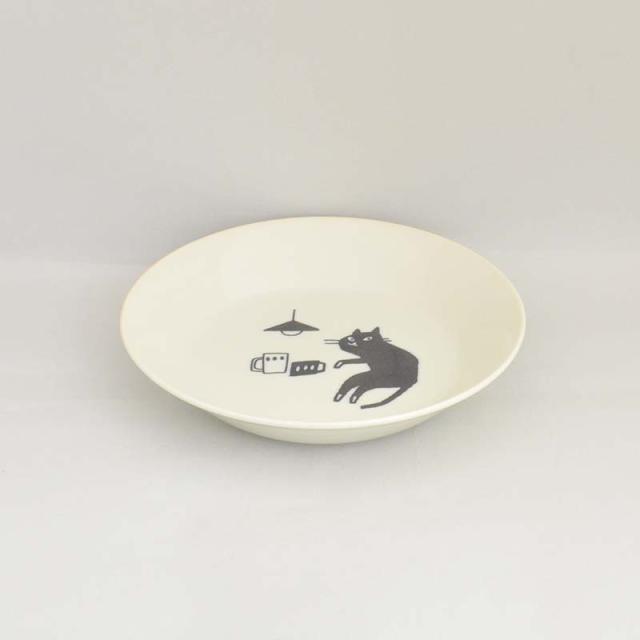 猫の暮らし方 20cm マルチプレート 食器 器 お皿 磁器 美濃焼 深め ツルツル 食洗機使用可能 電子レンジ使用可能 おしゃれ 可愛い シンプル 食卓 キッチン用品 ギフト プレゼント 贈り物