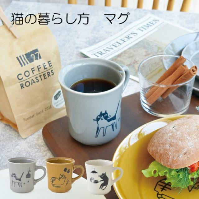 猫の暮らし方 マグ 280ml マグカップ かわいい 猫 グレイ ブラウン ホワイト 陶器 美濃焼 可愛い おしゃれ カフェ カフェ食器 カフェ風 テーブルウェア コップ カップ シンプル ドット 割れない 日本製