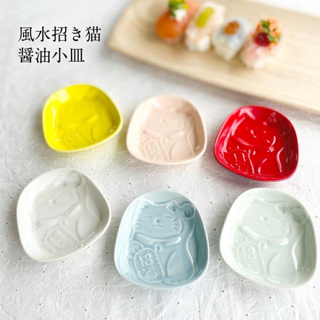 風水招き猫醤油小皿 小皿 醤油皿 皿 おしゃれ食器 かわいい プレート 薬味 そば 変形 手塩皿 調味料 日本製 美濃焼 食洗機対応 電子レンジ使用可 プレゼント ギフト カクニ KAKUNI 縁起物