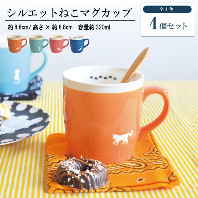 シルエットねこ マグ 4個セット 公式 猫 マグカップ 可愛い シルエットねこ マグ 美濃焼 かわいい 猫 おしゃれ ねこ柄 ネコ柄 足あと 大きめ 電子レンジ対応 北欧 ギフト 日本製 プレゼント ギフト包装 誕生日プレゼント