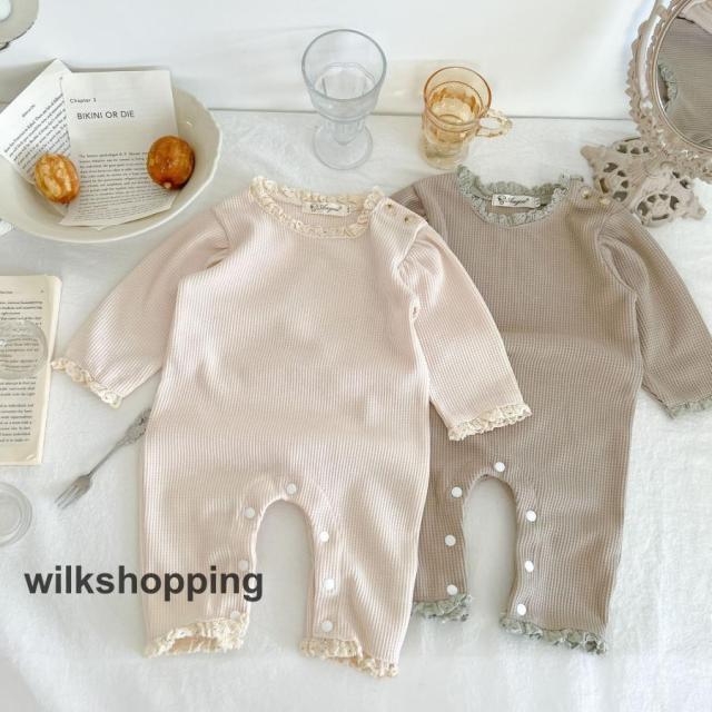 セレモニーロンパース ワッフルロンパース 退院着 お宮参り ロンパース 女の子 新生児 ベビー服 おしゃれ ベビー服 誕生日 セレモニー 出産祝い ワッフル生地