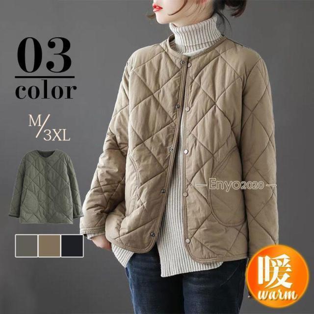 キルティングコート レディース 中綿コート 襟なし ショート丈 キルティング 無地 軽量 暖かい アウター ゆったり カジュアル 冬コート