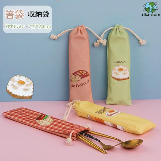 シンプルな巾着式、ストロー、箸、カトラリーの保管収納に便利です。