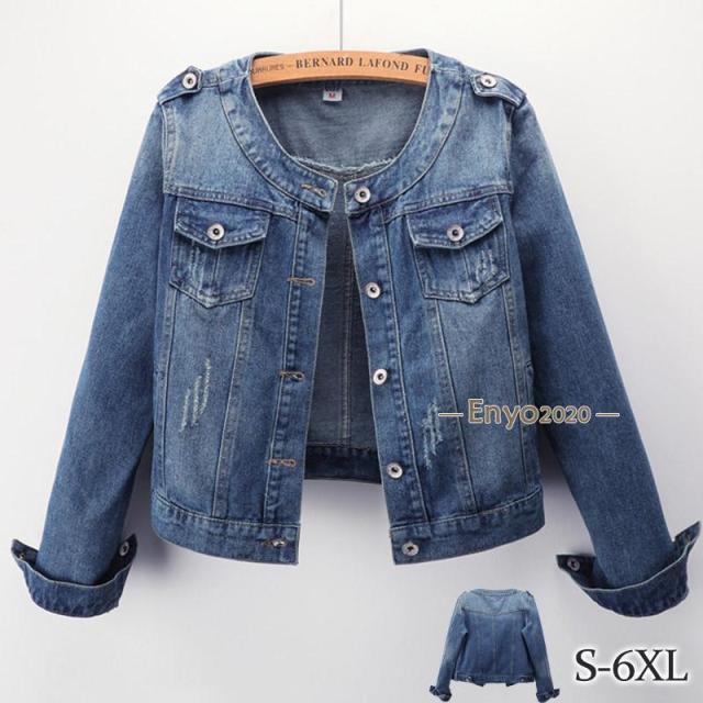 新作 デニムジャケット レディース ジャケット ジージャン 短め ノーカラー クルーネック 長袖 ダメージ加工 カジュアル 大きいサイズ 着痩せ 春秋