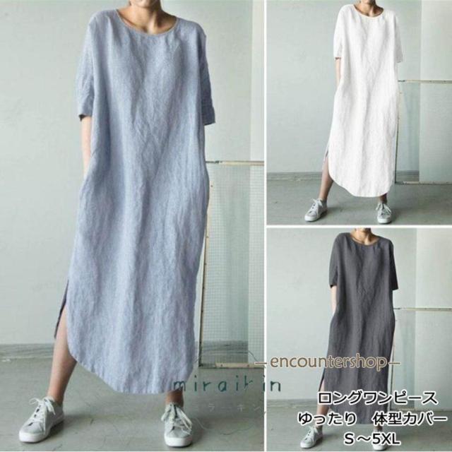 ロングワンピース 夏 レディース 30代 40代 50代 マキシワンピース 半袖 リネンワンピース マキシ丈 亜麻ワンピース 無地 スリット ワンピ 大きいサイズ ゆるっとワンピース 体型カバー 大人 カジュアル 大きいサイズ マキシワンピ 綿麻混 夏ワンピース 夏物 ママコーデ 大きいサイズ 着痩せ オシャレ ママワンピース