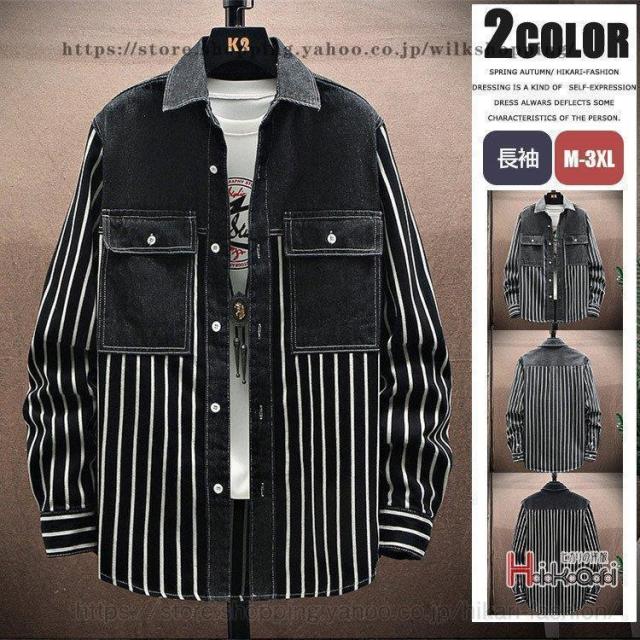 デニム シャツジャケット メンズ 長袖 デニムシャツ カジュアルシャツ ストライプ トップス メンズファッション