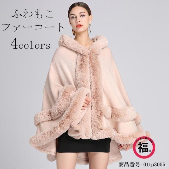 アウター フード付きポンチョ マント ボレロ ファーコート ファー 襟ファー ふわもこ フェイク ファーケープ エレガント 大人 フード付き 無地 秋冬