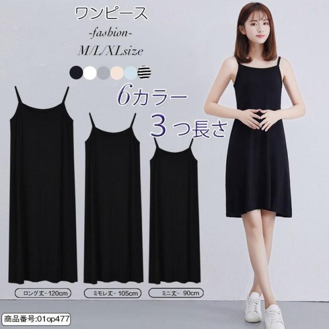 ワンピース レディース 夏 ミニ丈ワンピース ミモレ丈ワンピース ロング丈ワンピース キャミソールワンピース インナーワンピース 部屋着 カジュアル 無地