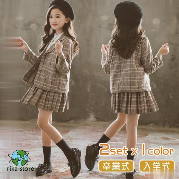 スーツ 子供 女の子 上下セット 2点セット 入学式 卒業式 プリーツスカート 可愛い 女子 小学生 中学生 スクール 制服 上品