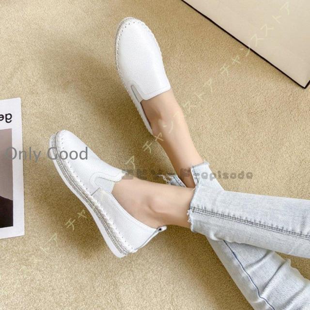 スニーカー レディース キラキラ 厚底 白 黒 本革 おしゃれ 走れる 痛くない 疲れない 歩きやすい ローカット かわいい ローファー スリッポン ラインストーン