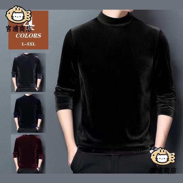 ベロアカットソー 長袖Tシャツ ハイネック メンズ 暖かインナー Tシャツ 長袖 ロンT 起毛 トップス