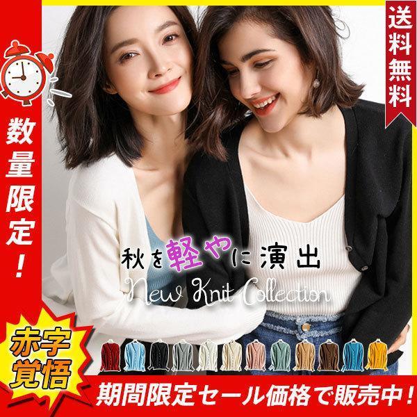 カーディガン レディース ニット ショート丈 羽織 アウター 前開け パステルカラー 長袖 秋 薄手 カジュアル オシャレ 無地 シンプル 大人