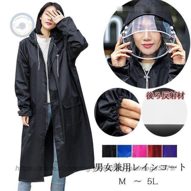 レインコート 自転車 ママ 防水 通学 レディース メンズ サンバイザー カッパ 雨具 自転車 ポンチョ ロング丈 バック反射テープ