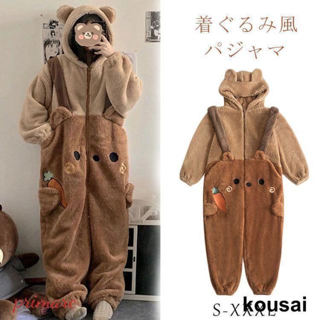 着ぐるみ パジャマ 大人用 レディース ルームウェア クマ耳 モコモコ パジャマ 冬用 可愛い 動物 秋 冬 オールインワン 寝巻き 前開き 怪獣 コスプレ プレゼント