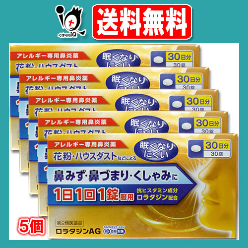 【第2類医薬品】★ロラタジンAG 30錠(30日分)×5個セット【日新薬品工業】アレルギー専用鼻炎薬 花粉・ハウスダストなどによる鼻みず・鼻づまり・くしゃみに ロラタジン 10mg配合 クラリチンと同成分配合