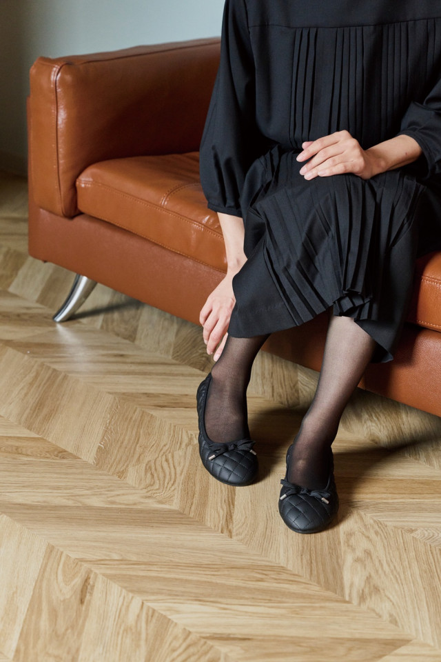 バレエシューズのような、甲から足首にかけてすっきり見えするフォルム。