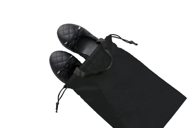 巾着のように紐で絞れる&持ち手付きで、汚れを気にせずバッグに収納可能。