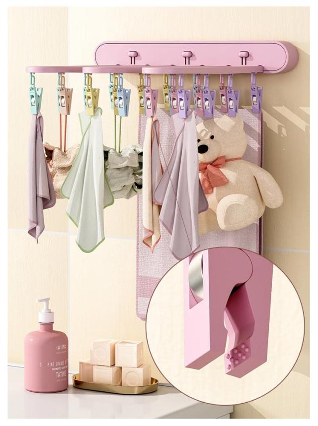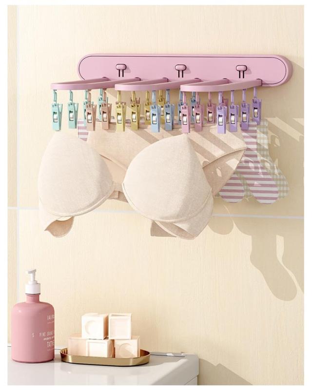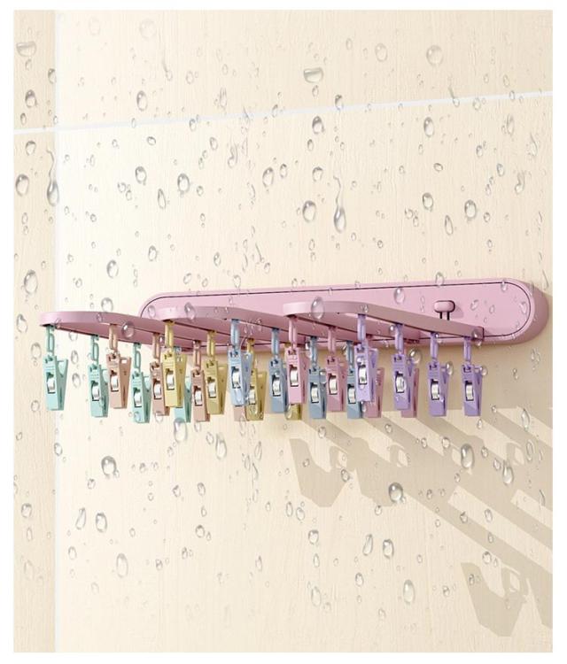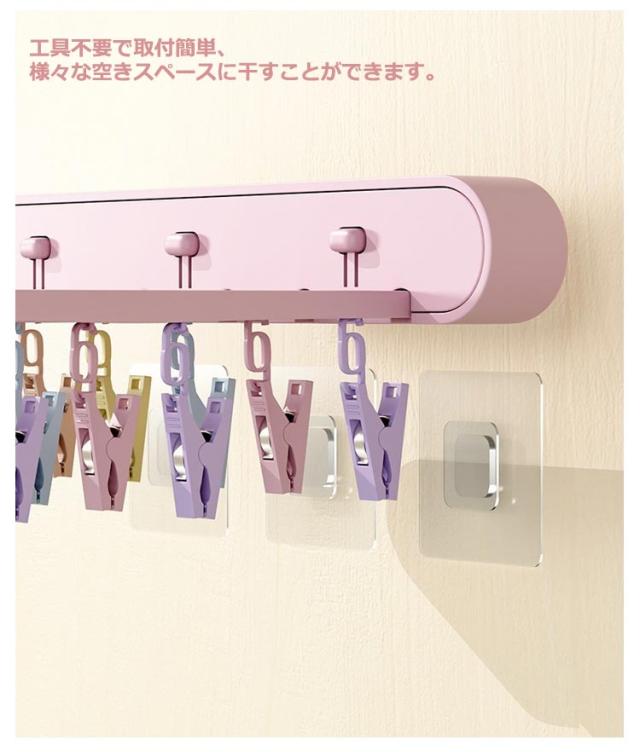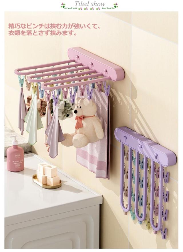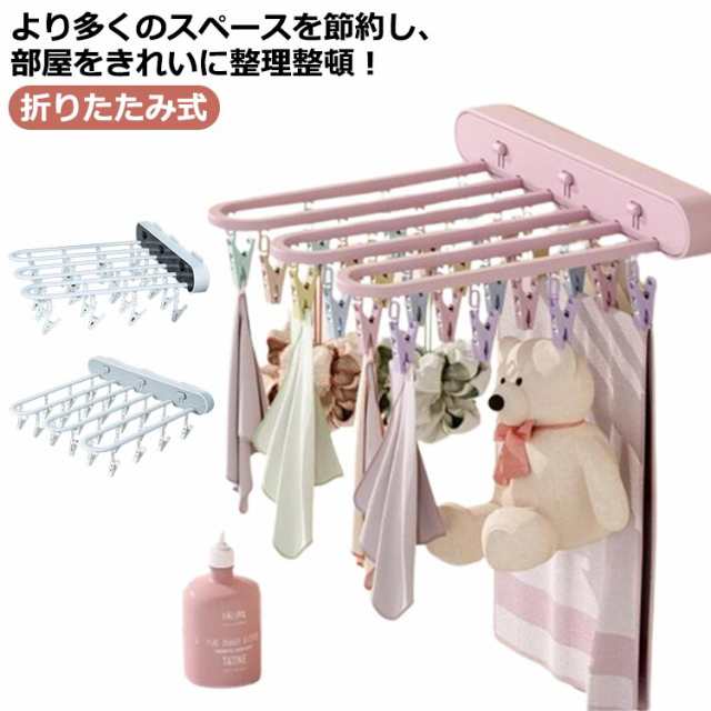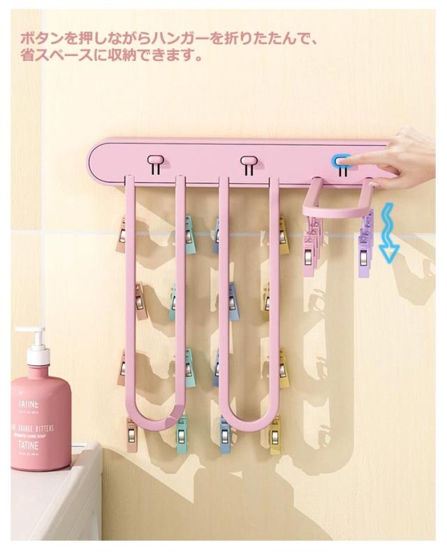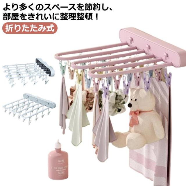ピンチハンガー 物干し 折りたたみ式 物干しハンガー 壁掛け 洗濯ハンガー 24ピンチ ワンタッチ収納 壁掛けラック 防湿 折り畳み 省スペース ハンガー収納フック 部屋干し 室内 収納 洋服 衣類 小物 旅行使用 便利グッズ ブラック グレー ピンク 送料無料