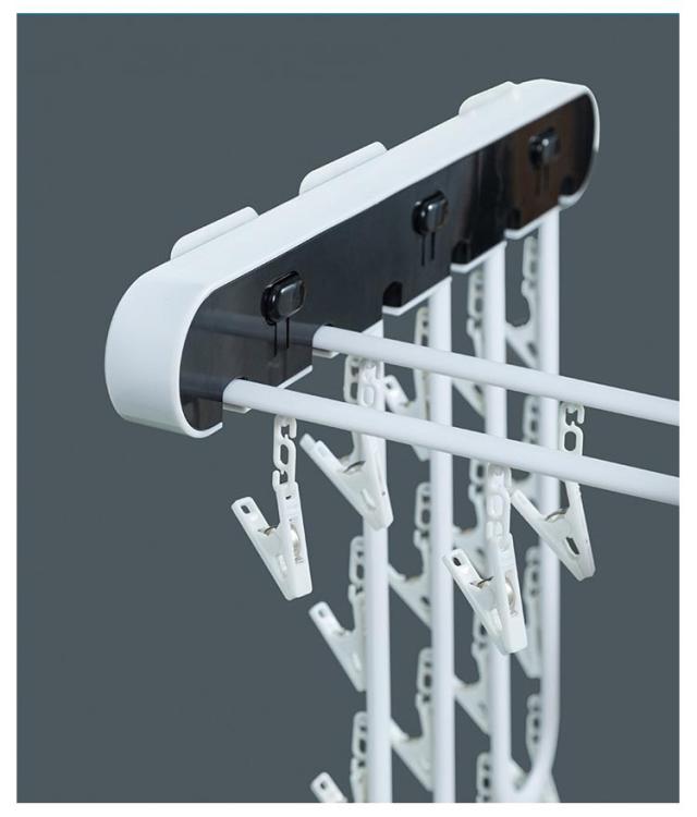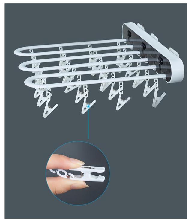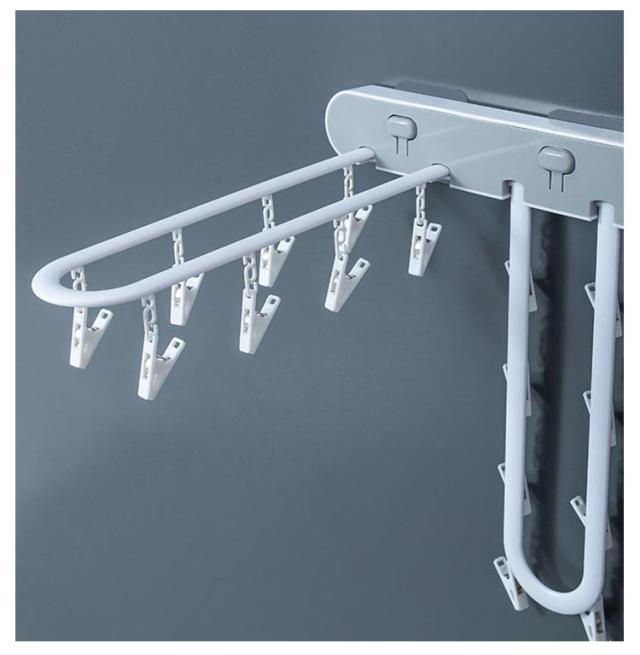 | より多くのスペースを節約し、部屋をきれいに整理整頓! ボタンを押しながらハンガーを折りたたんで、省スペースに収納できます。 精巧なピンチは挟む力が強いくて、衣類を落とさず挟みます。 工具不要で取付簡単、様々な空きスペースに干すことができます。 | |