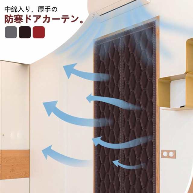 | 中綿入り、厚手の防寒ドアカーテン。 玄関、ドア、開き戸、勝手口やベランダなど色々な場所に取り付け可能!面倒な工事が不要、女性の方でも簡単に操作できます。 カーテンの真ん中はマグネット式なので、人や猫、犬などは通り抜けたら、カーテンが自動で閉まります。 荷物を運んでも両手が解放でき、出入りもスムーズにとても便利です。 | |