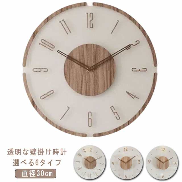 透明 壁掛け時計 木製 ウッド クリア 掛け時計 静音 壁掛け 時計 音がしない おしゃれ 時計 クロック 贈り物 シンプル ナチュラル インテリア レトロ 木目調 見やすい お洒落 リビング ギフト 北欧 新築祝い 引っ越し祝い