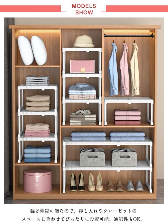 押し入れ 伸縮 収納棚 収納ラック クローゼット 押入れ整理棚 幅伸縮 押入れ収納 押入れラック 衣類収納 シンク下ラック 食器棚 置き型 スライド式 高耐荷重 積み重ね可能 省スペース 洗面所 キッチン 整理ラック シューズラック 全16サイズ 送料無料