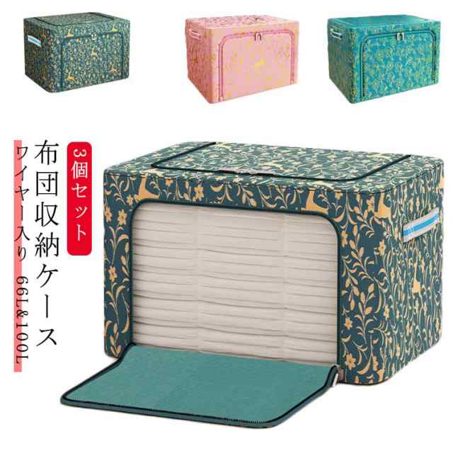 3個セット 66L 100L 布団収納 収納ボックス 羽毛布団 収納 布団 収納ケース 布団ケース 衣類収納 布団 収納袋 丈夫 ワイヤー 衣類 収納ケース 持ち手 大容量 敷布団 掛け布団 おもちゃ 収納ケース 衣類収納袋 押し入れ クローゼット 収納 折りたたみ 送料無料