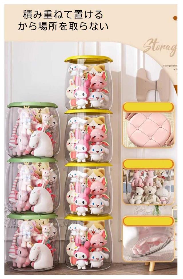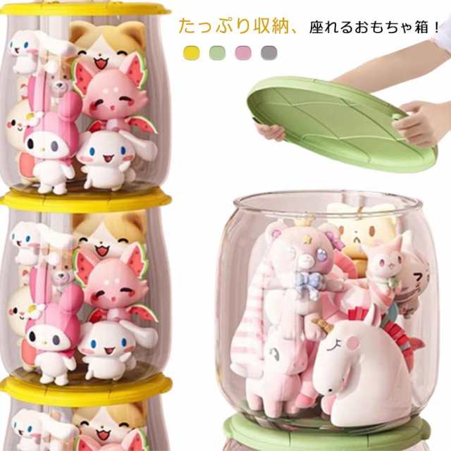 収納スツール 座れる 2個セット スツール 収納 収納ボックス 持ち手付き 大容量 持ち運び フタ付き 積み重ね スタッキング おしゃれ チェア 椅子 イス オットマン かわいい 丸 丸型 背もたれなし 子ども ぬいぐるみ おもちゃ 衣類 小物 クリア 透明 可愛い