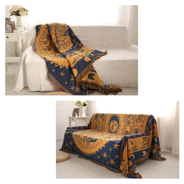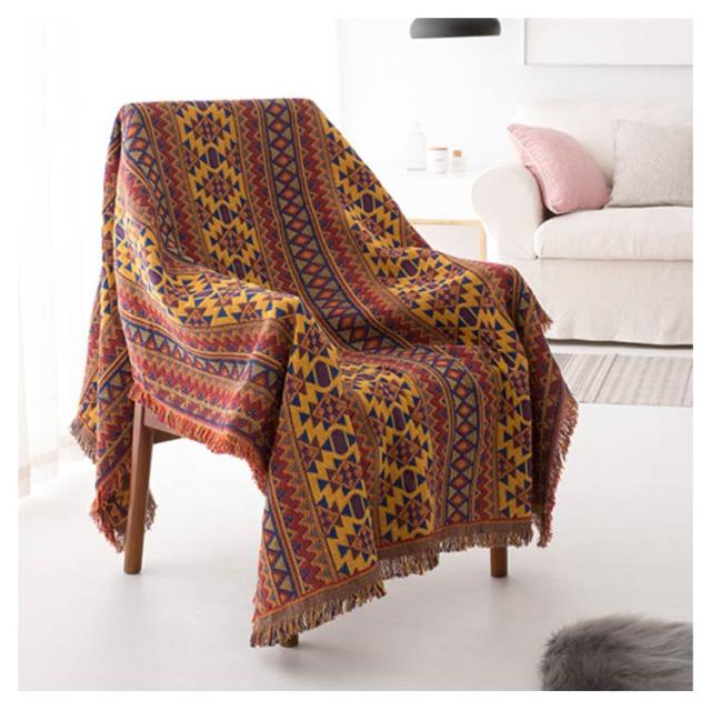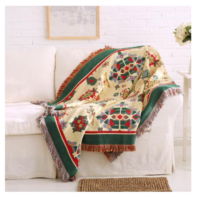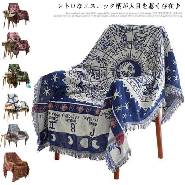 | レトロなエスニック柄が人目を惹く存在♪ ソファーカバー、ピアノカバー、ブランケット、ベッドカバー、ラグ、、チェアカバー、テーブルクロスなどに使い方色々、様々な用途に使えるマルチカバー。 フリンジ付きでエレガントで優しいイメージ◎ 柔らかで肌触り優しい綿混素材、季節を問わず、オールシーズン活躍できます。 | |