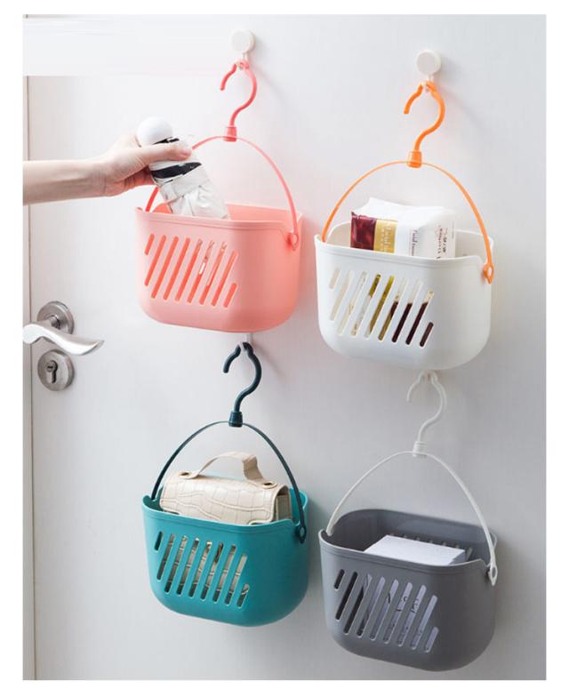 お風呂収納 お風呂バスケット 吊り下げ 底穴あり 水切り シャワーラック お風呂用 洗面所 浴室 バスケット 北欧 シャンプー ボトル おもちゃ 収納 バスラック コンパクト バーに引っ掛け 掛ける 白 ホワイト グレー