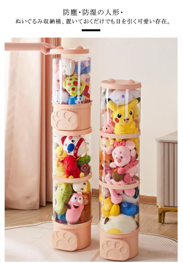ぬいぐるみ 収納 ケース 透明 ぬいぐるみ収納ボックス ディスプレイケース おもちゃ収納ボックス 高さ47cm 77cm 107cm 幅26cm 円柱形 防塵 DIY 展示ボックス 蓋付き 人形 コレクションケース 大容量 直径26cm 透明円柱のぬいぐるみ収納ケース