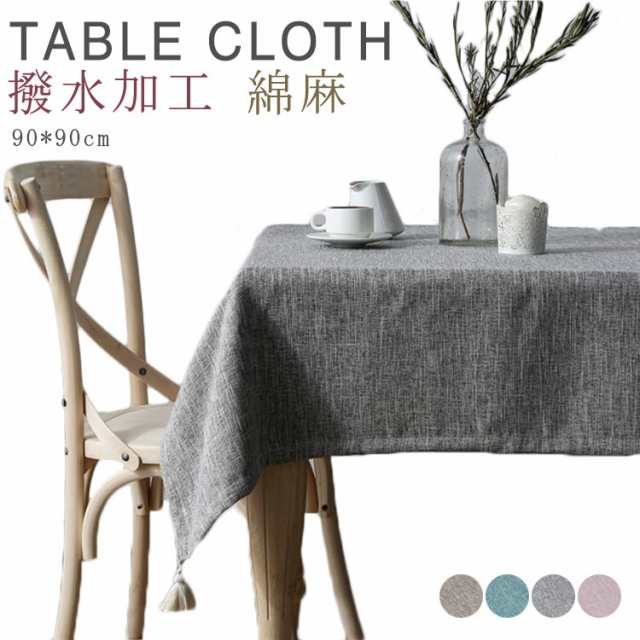 テーブルクロス 綿麻 リネン 正方形 90*90cm テーブルクロス 食卓カバー 北欧 テーブル クロス 撥水加工 無地 タッセル付き デスクカバー ダイニング キッチン テーブルカバー マえる ナチュラル 家庭用 業務用 送料無料