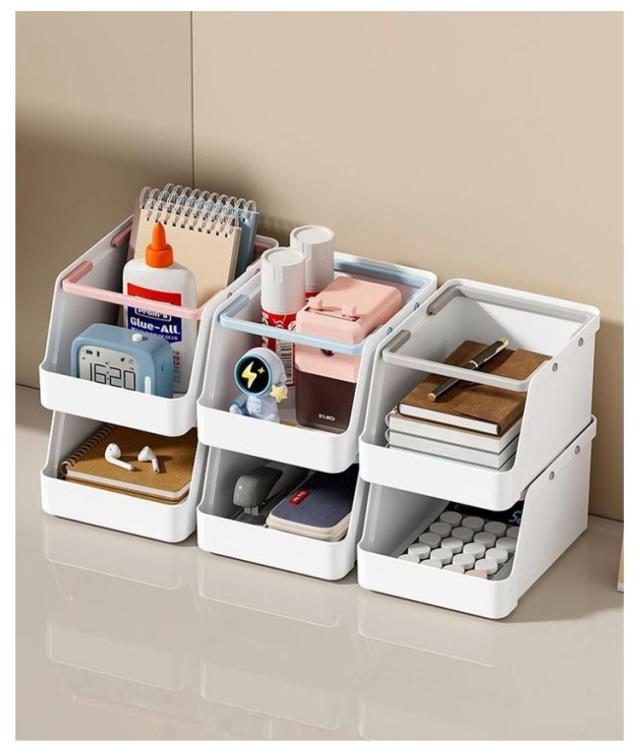 卓上 収納ボックス 収納ケース 机の上 重ねる可能 デスク収納トレー テーブル 収納ケース コスメ収納 文房具 ハンドル付き デスク整理 DIY 収納ケース 洗面台 机上 オフィス用品 小物入れ