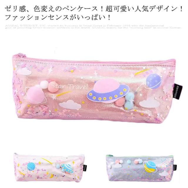 ペンケース 筆箱 オーロラ 星空 クリア レインボー 虹色 動く 透明 ペンポーチ 大容量 小物入れ 女の子 中学生 小学生 高校生 女子高生 スリム ふで箱 文房具 ふでばこ