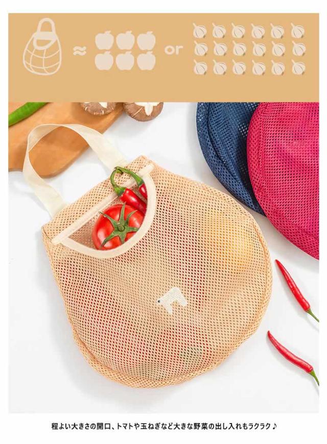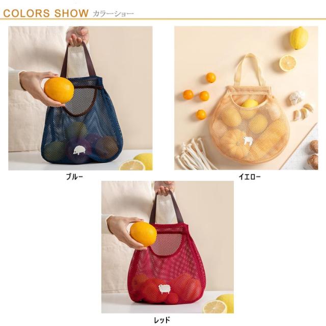 | 可愛く収納力も抜群なネットバッグ2枚セット 常温保存の野菜や果物の保管に便利な通気性のよい収納ネットです。 程よい大きさの開口、トマトや玉ねぎなど大きな野菜の出し入れもラクラク♪ ネットが伸縮性があり様々な形の物が入ってきて収納力抜群です。 上には木製棒が付いているのでしっかり支えて型崩れにもにくいです。 メッシュ生地通気性は優れて、果物・野菜の収納だけでなく、バス用品にも対応可能です。 丸洗い可能で、お手入れ簡単な優秀アイテムです。 | |