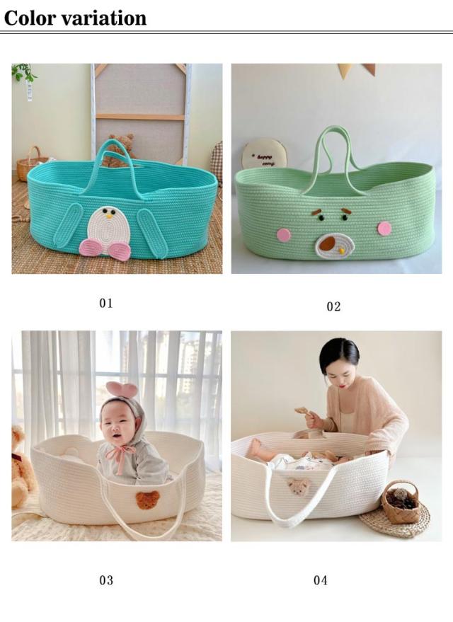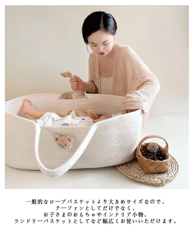 クーファン かご ベビーバスケット ベビーキャリー ベビーベッド 籠 バスケット 赤ちゃん 持ち運び コンパクト ベビー クーハン 添い寝 お昼寝 ロープ編み 折りたたみ ベビー用 赤ちゃん用 シンプル 春 北欧風 ギフト ベビー用品