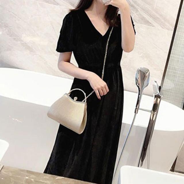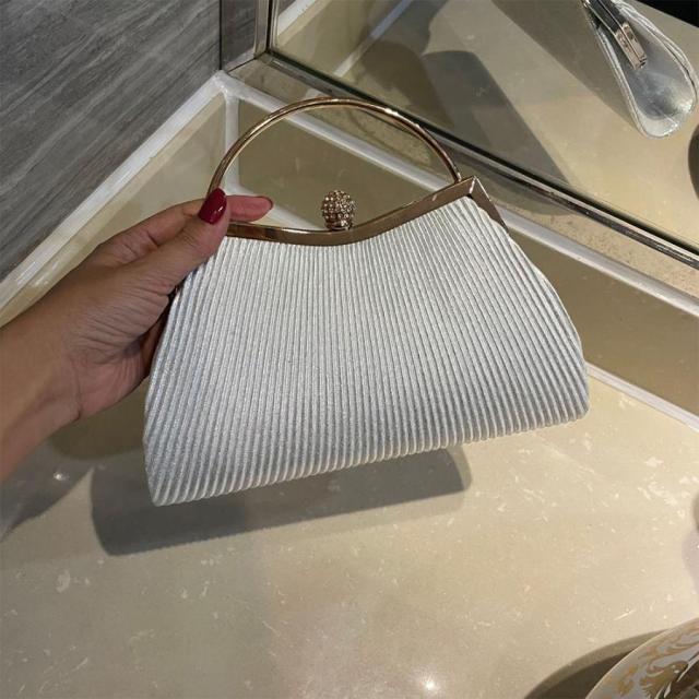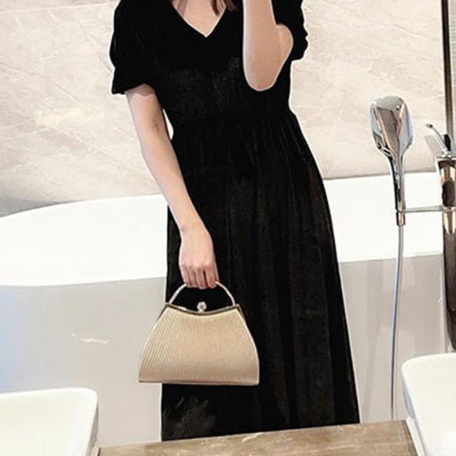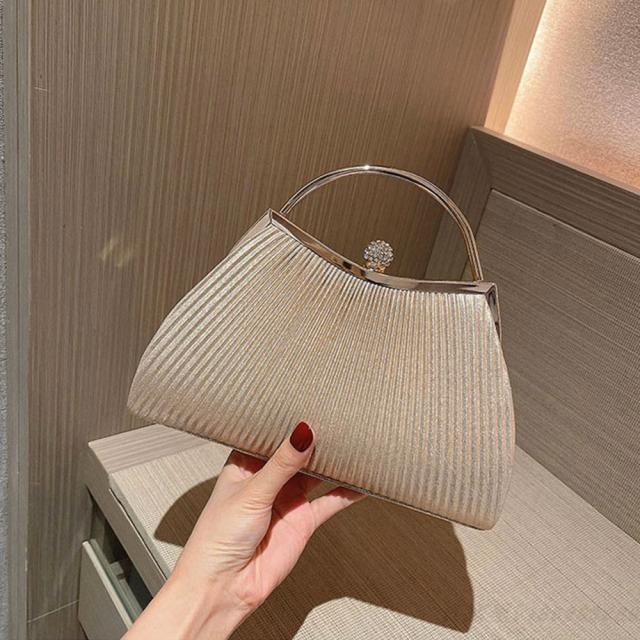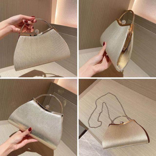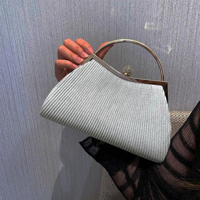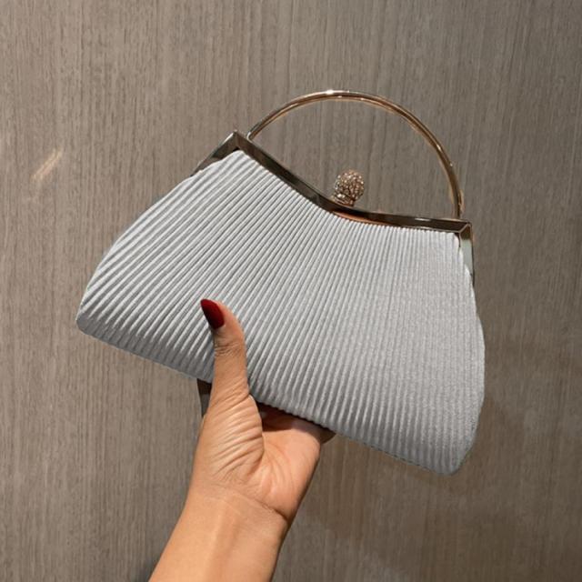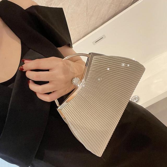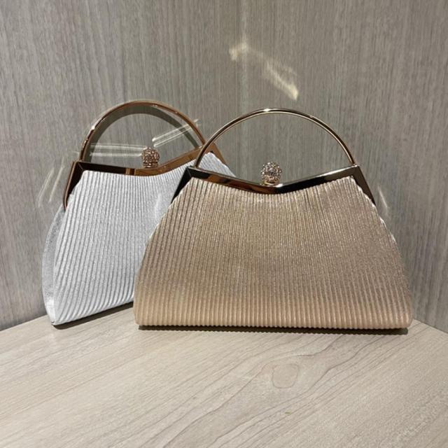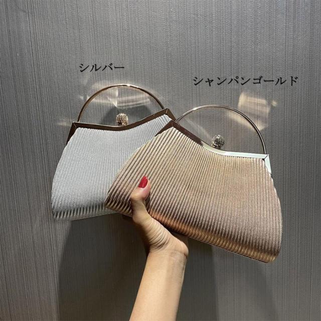 光沢感のある上品なサテン生地にプリーツ加工を施したパーティーバッグ