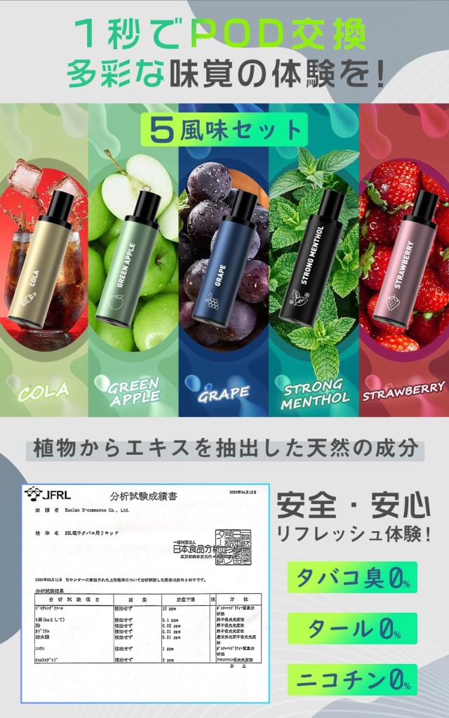 ・1セットで5種フレーバー入り、1台で飽きずに楽しめます。