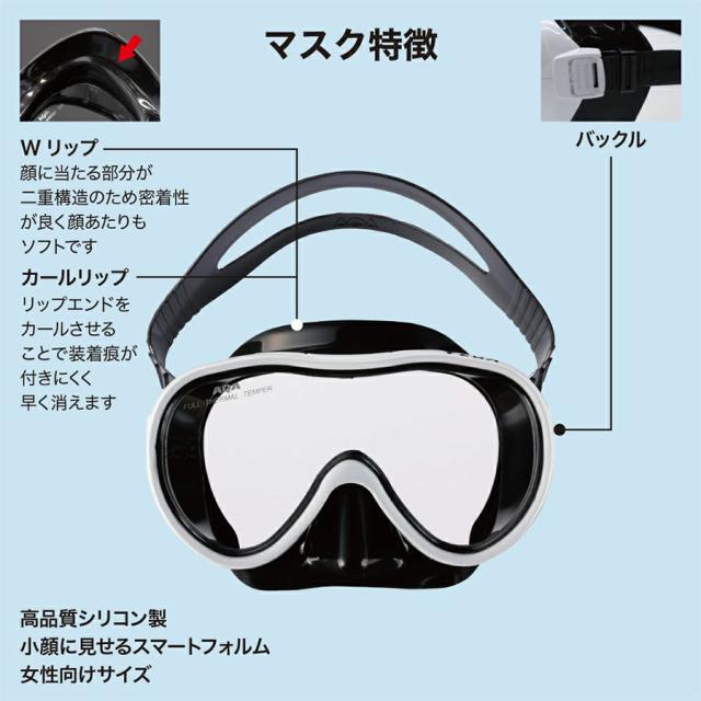 2点セット アクア レディース ベガソフト カナールフレックススペシャル マリンスポーツ シュノーケル 水中マスク シュノーケリング ホワイト 白 ブラック 黒 送料無料 AQA KZ9110 KZ-9110